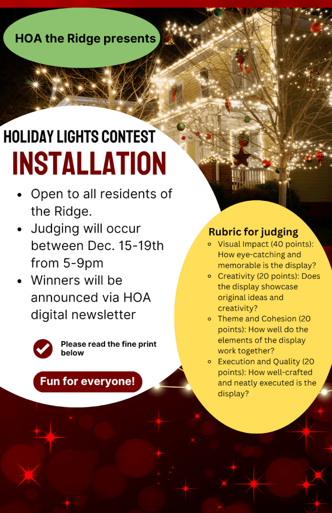 Whether you’ve called the Ridge home for many years or are new to the neighborhood, this is a great time to review, or reacquaint yourself with our HOA Community Rules and Guidelines.