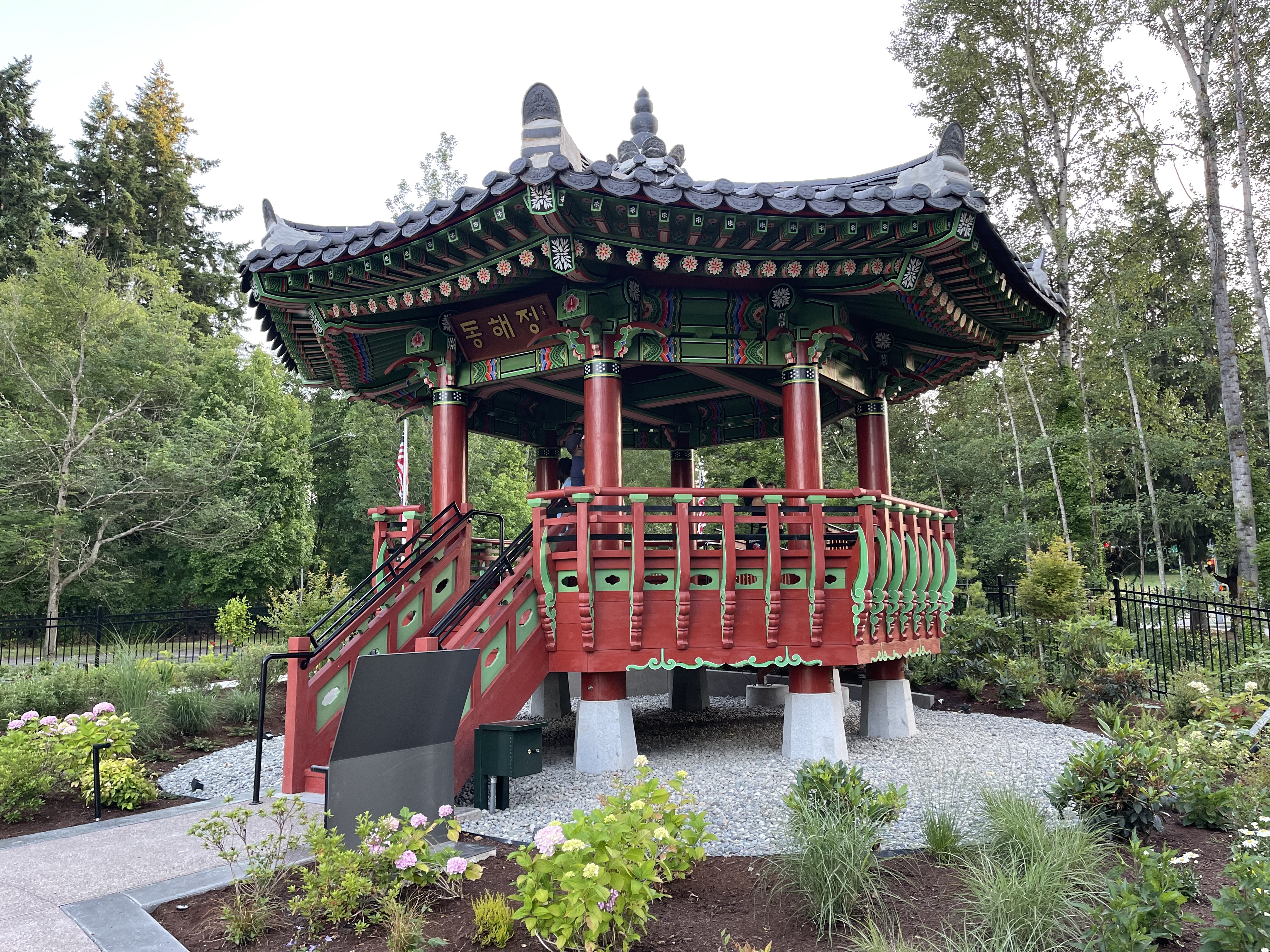 On June 10, the Korean community of Federal Way gathered to celebrate a milestone thirteen years in the making: the grand opening of Hanwoori Garden, named for the Korean word “Hanwoori,” meaning “We are one.” The new garden features a beautifully crafted Palgakjeong (traditional Korean pavilion) and a traditional Korean gate.